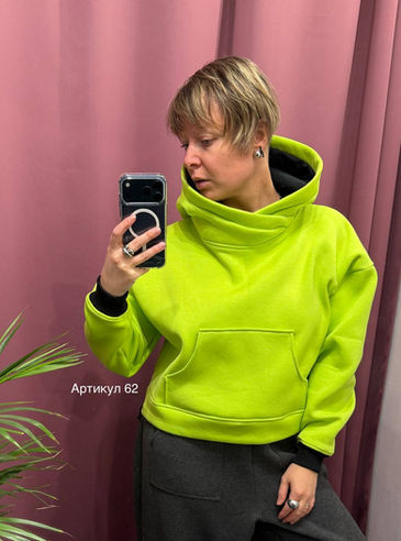 Вкорочений худі з глибоким капюшоном.